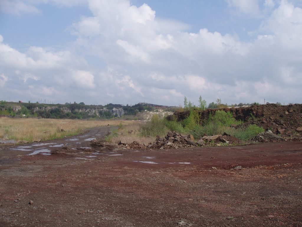 Карьер в Полицах. Рыжая земля это вулканический туф, покрывающий базальтовое поле с агатами.